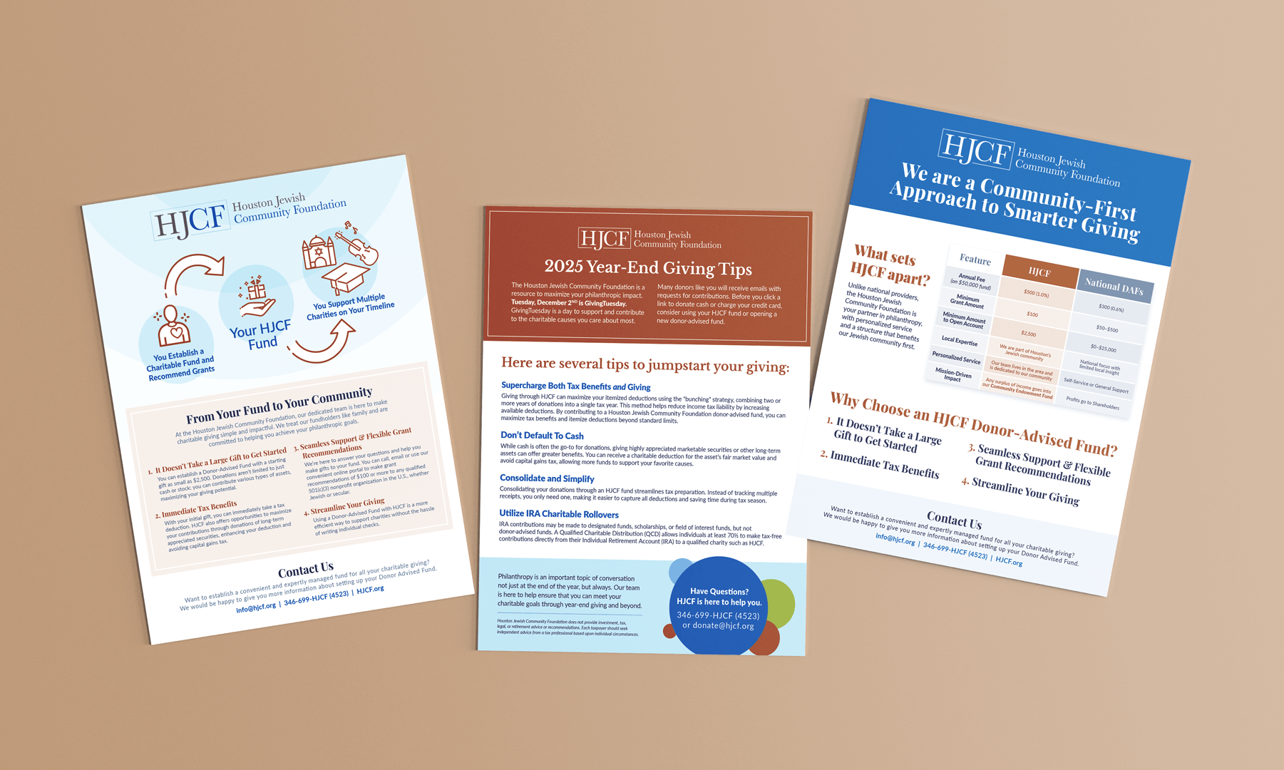 The Houston Jewish Community Foundation (HJCF) is a non-profit organization that manages and distributes funds to support charitable activities within the Houston area, helping individuals and organizations to fulfill their philanthropic dreams. Over their 40+ years of work, HJCF has managed more than $325 million in assets that benefit the Greater Houston community.